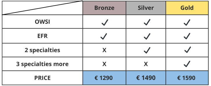 - Abschluss der Kurse Emergency First Response (Primary Care und Secondary Care) innerhalb der letzten 24 Monate
